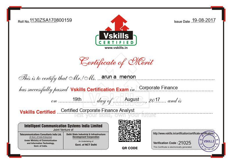 arun a menon - Certified Corporate Finance Analyst
