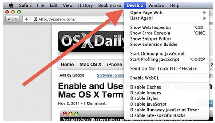 In order to inspect the elements in Safari Browser, the Safari Develop menu provides tools you can use to make sure your website works well with all standards-based web browsers. In order to access Safari Develop menu , choose Safari > Preferences, click Advanced, then select “Show Develop menu in menu bar.