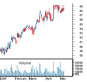Volume refers to the amount of shares or bonds traded over a span of time, generally a day. Higher volume of a security indicates the more active the security is. In order to determine the movement of the volume, the volume bars should be referred that are usually found at the bottom of any chart where the volume bars demonstrates the number of shares that have been traded per period and illustrates the trends in the same way that prices do. Following is a figure displaying volume bars,
