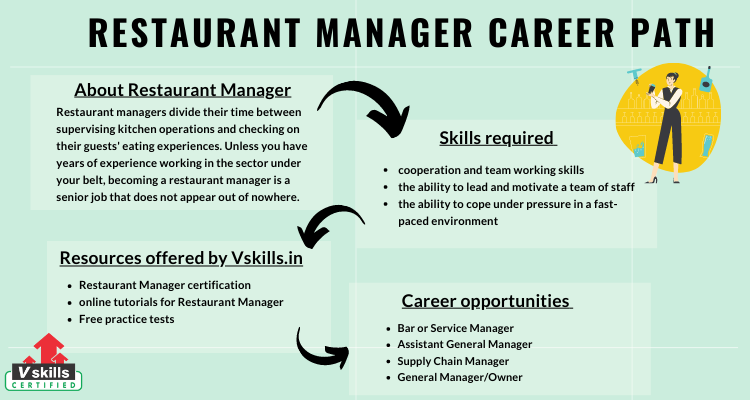 Discover the career opportunities and other prospects of career as Restaurant Manager. Hurry up and start preparing now with Vskills.in!