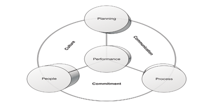 - People – managing the human resources; culture change; teamwork; communications; innovation and learning.