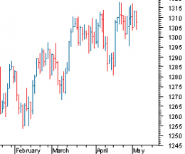 Candlestick charts are somewhat similar to bar charts, but it differs in the way that it is visually constructed. The candlestick charts have a thin vertical line showing the range of the trading period similar to the bar charts, but the difference comes in the formation of a wide bar on the vertical line, indicating the difference between the opening and the closing price. Candlesticks rely heavily on the use of colors to explain what has happened during the trading period. Two color are used to indicate days up and days down. When the price of the stock is up and closes above the opening trade, the candlestick will usually be white or clear but if the stock has traded down for the period, then the candlestick will usually be red or black, accordingly. Note, if the stock’s price has closed above the previous day’s close but below the day’s open, the candlestick will be black or filled with the color that is used to indicate an up day.