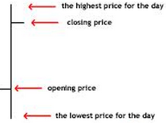 In addition to the closing price, bar charts also displays the open, high, and low prices for the time period selected. The chart is made up of a series of vertical lines that represents each data point. These vertical line represents the high and low for the trading period, along with the closing price. The opening and closing prices are represented on vertical line by a horizontal dash. The opening price is displayed by the dash that is located on the left side of the vertical bar and the closing price is represented by the dash on the right side of the vertical bar.
